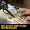 Arm design keeps the blade perpendicular to the work, dramatically reducing over or under cutting