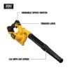 This 20V MAX* Cordless Blower is ideal for clearing debris from the ground and overhead. A 3-speed design offers versatility for a range of jobs, while its compact profile makes it perfect for use in tight spots. This blower is part of the 20V MAX* System of products.