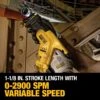 Variable speed trigger with 0-2,900 spm provides blade control for precision cuts