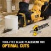 4-position blade clamp allows for flush cutting and increased positional versatility with tool-free blade changes