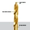 With its unique patented Pilot Point Tip, IMPACT READY Titanium Nitride Coated Drill Bits delivers speed and clear, burr-free holes also helping to reduce bit walking. A patented web taper helps to increase bit strength and it optimized flute delivers better control of the bit. The Titanium Nitride Coating coating will deliver a long life. Ideal for metal, wood, and plastic.