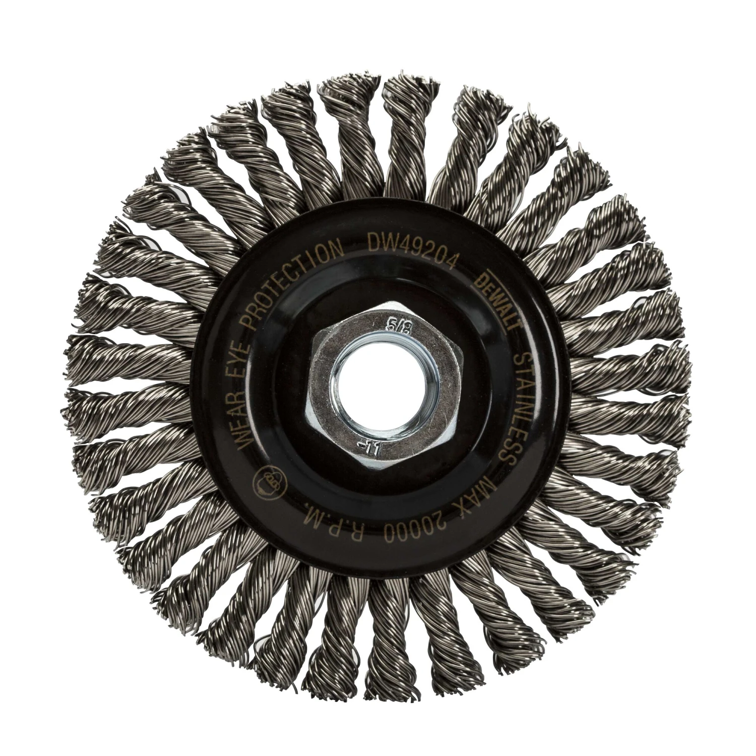 4-In x 5/8-in -11 HP, 0.020, Stainless Stringer Wire Wheel, 5/8-in-11 Arbor, Stringer Bead, Highly Specified Wire Grades Are Constructed With Internal Holding Plate To Ensure Consistency and Safety, Constructed For Even Balance Which Provides Smooth Performance, Knotted Wire Is For Heavy Material Removal, Crimped Wire Provides Flexibility For Light Removal Of Rust and Paint and General Cleaning.