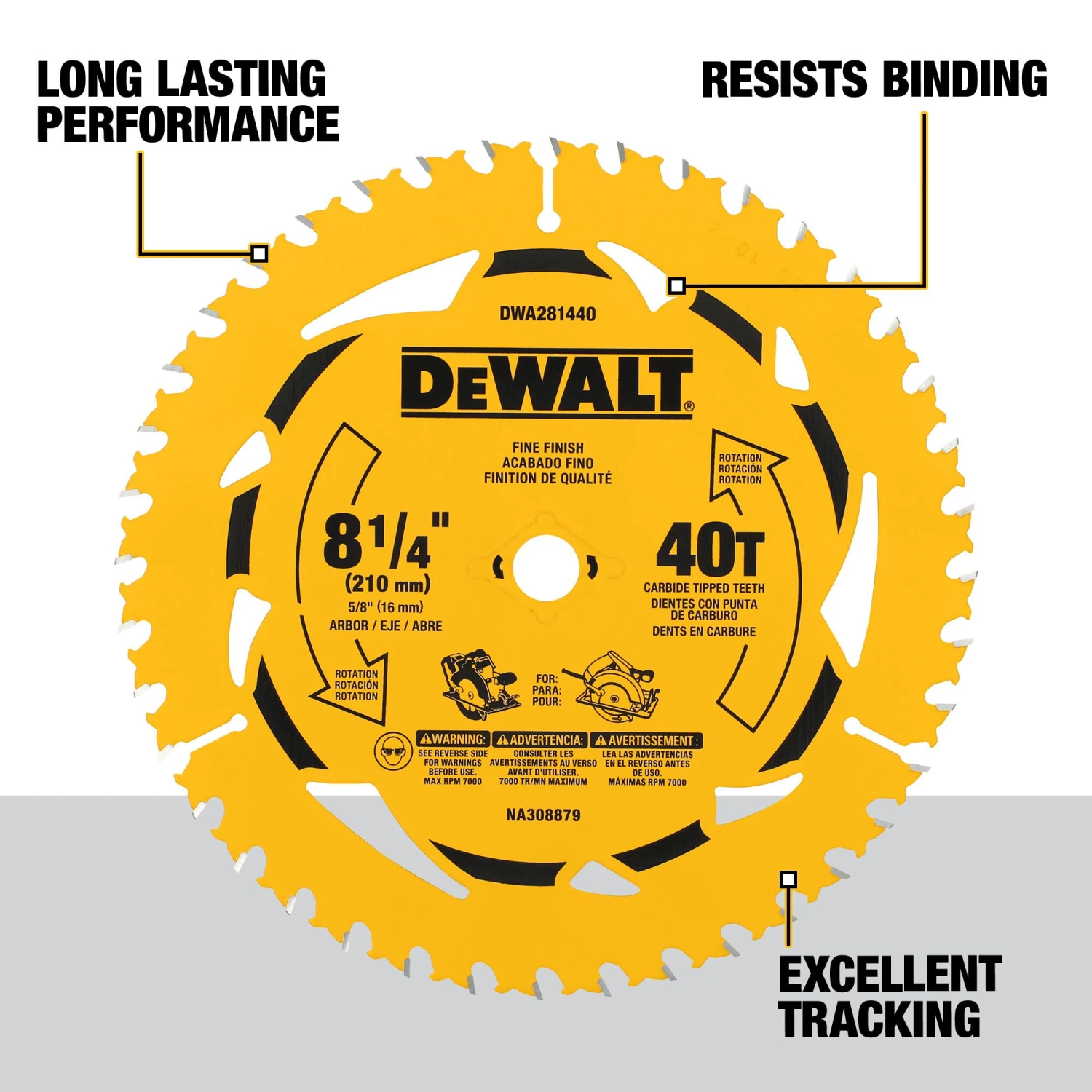 DEWALT 8-1/4-in 40 -Tooth Fine Finish Tungsten Carbide-tipped Steel Circular Saw Blade Individual