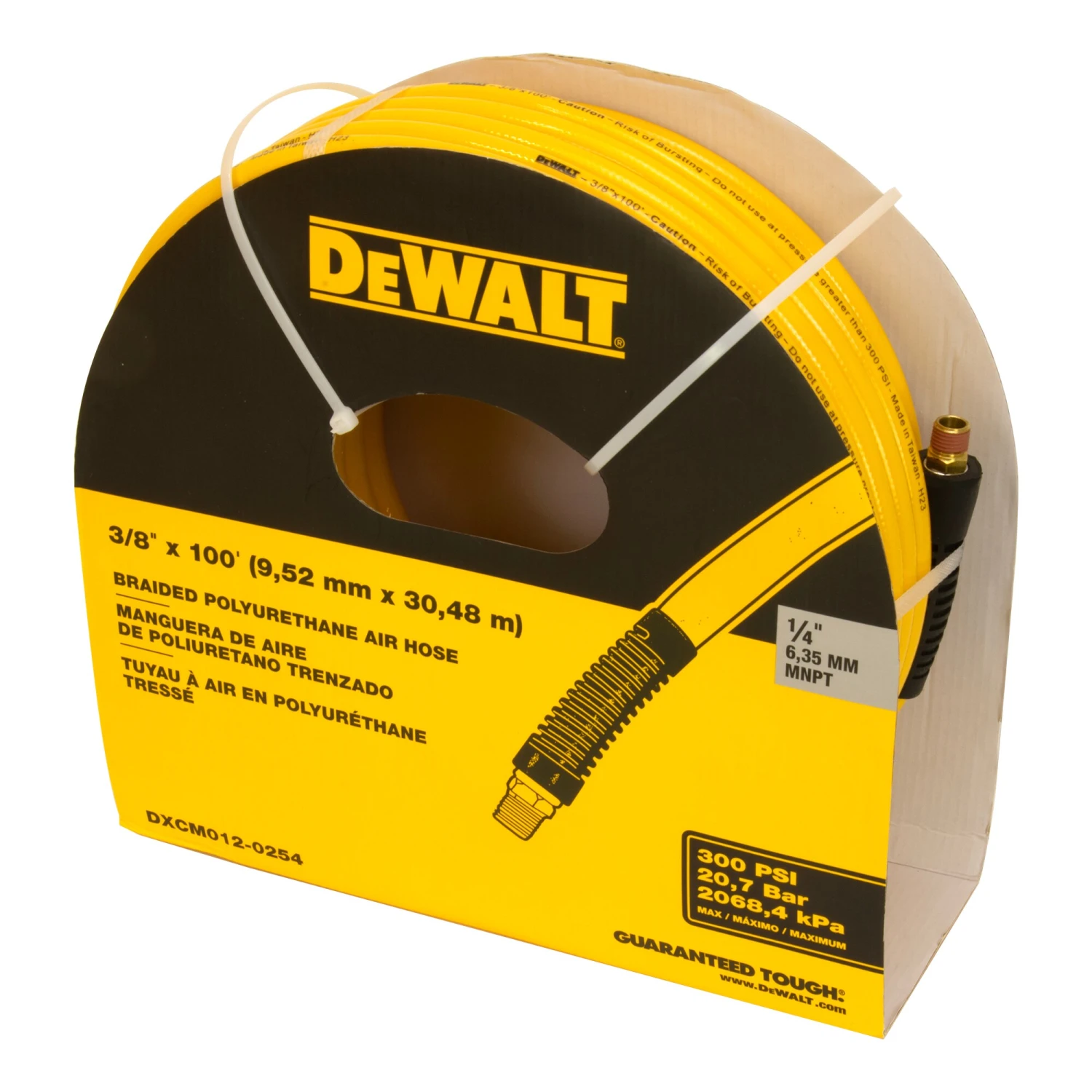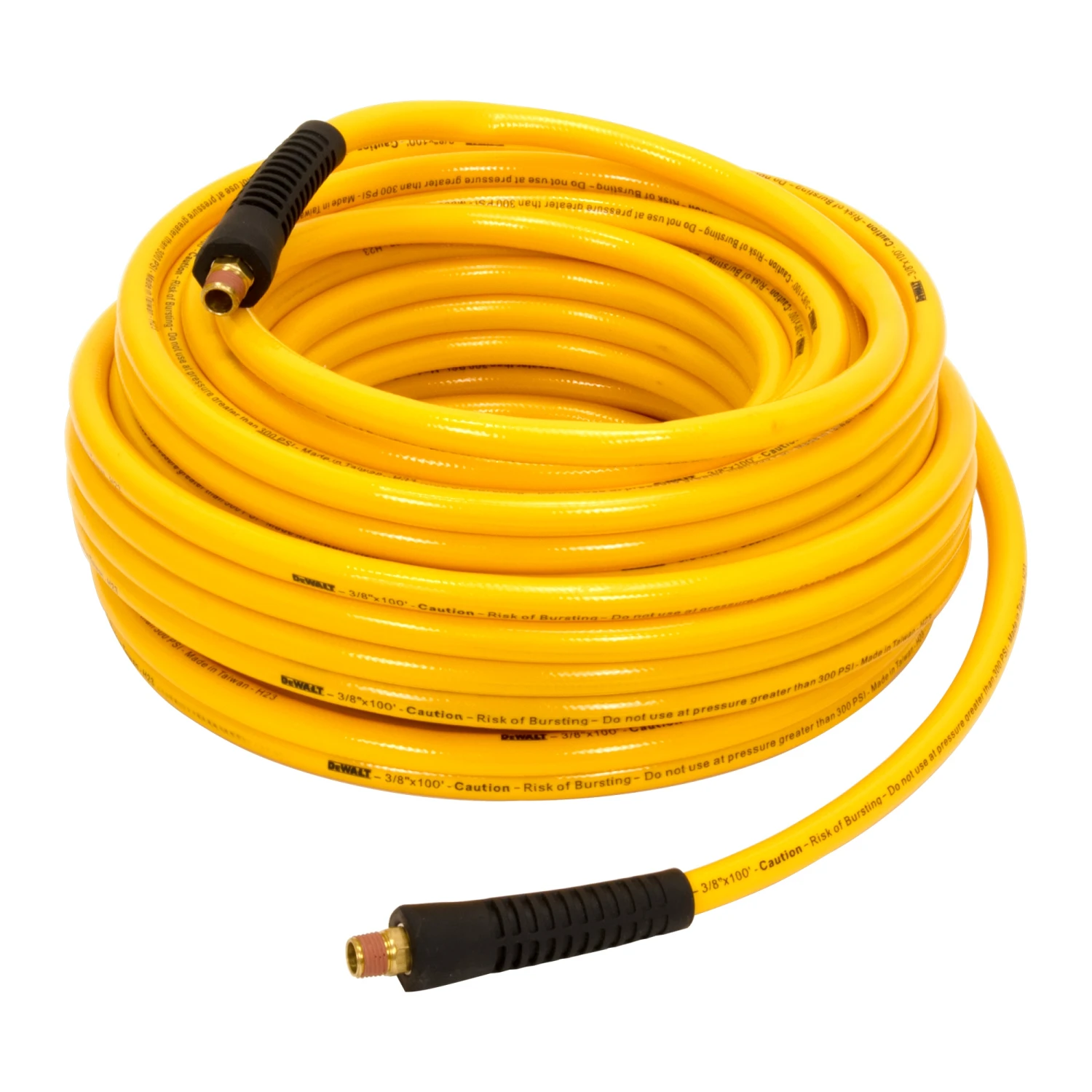 The DEWALT 100 ft. Air Hose is designed to withstand the rigors of your job site remaining flexible. This premium air hose is constructed from braided polyurethane material that is designed for maximum longevity. The hose design is lightweight and kink resistant.