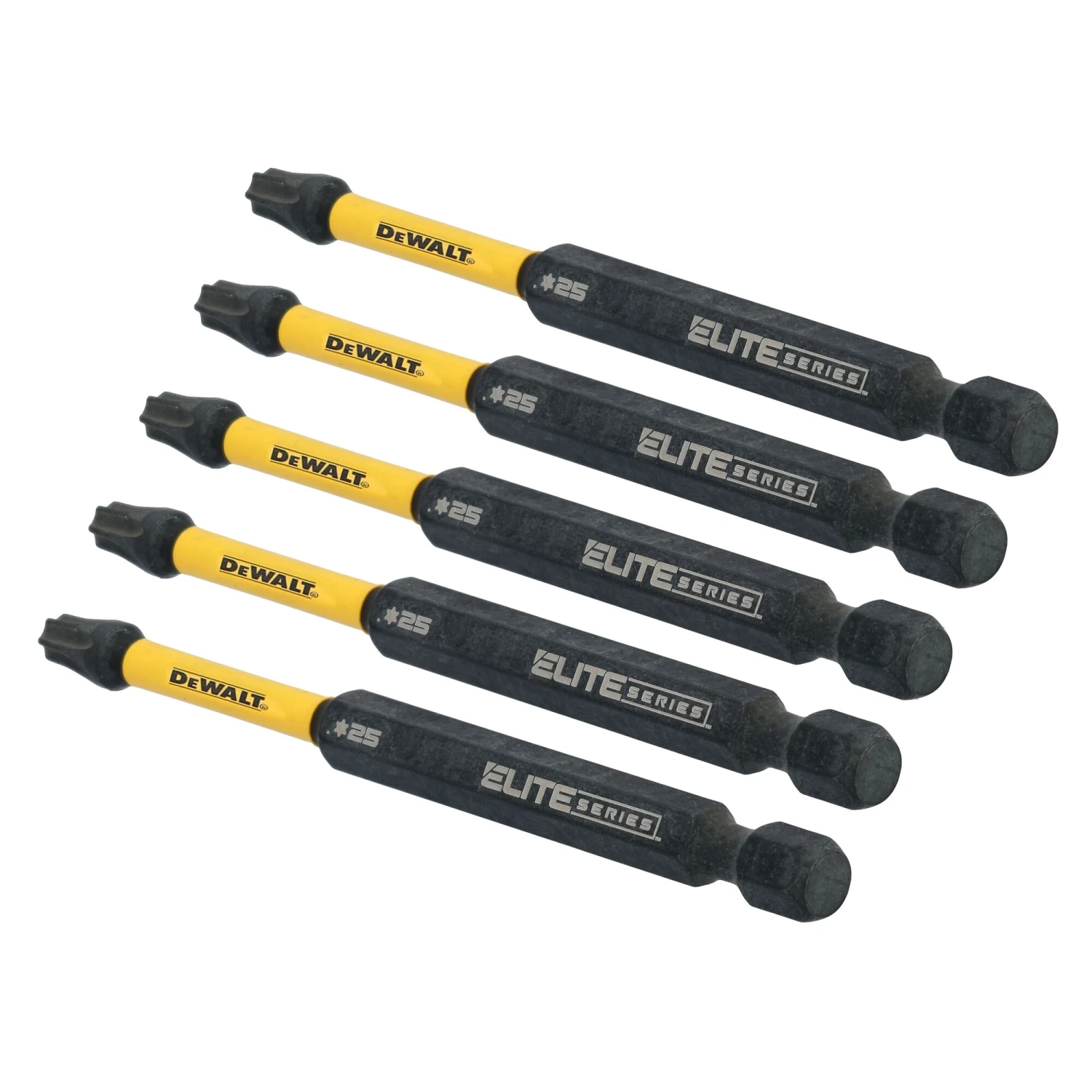 DISCLAIMERS: *On average vs standard DEWALT® screwdriving T25 bits; **Screw engagement vs Milwaukee® Shockwave® T25 screwdriving bits; ‡T25 is a trademark of Acument Intellectual Properties, LLC, used without permission to indicate compatibility; Milwaukee and Shockwave are registered trademarks of Milwaukee Electric Tool Corp, which has not endorsed or approved this comparison