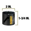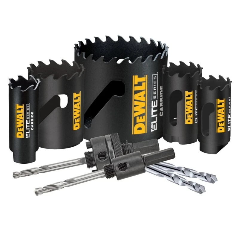 The DEWALT® ELITE SERIES™ Metal Cutting Carbide Tipped Hole Saws last up to 3X longer vs Milwaukee® and feature advanced welding technology to increase bond strength and retain carbide tips. The carbide tipped cutting edge cuts through a variety of demanding materials such as wood with nails, thick metal, and stainless steel. An aggressive tooth design penetrates hard metals and removes chips efficiently to reduce heat buildup. The large, continuous slot provides multiple leverage points for easy plug removal. (Applies to sizes up to 3-in) of MILWAUKEE® Carbide Tipped Hole Saw cutting 0.105-in thick stainless steel sheet. MILWAUKEE® is a registered trademark of Milwaukee Electric Tool Corp., which has not endorsed or approved this comparison.