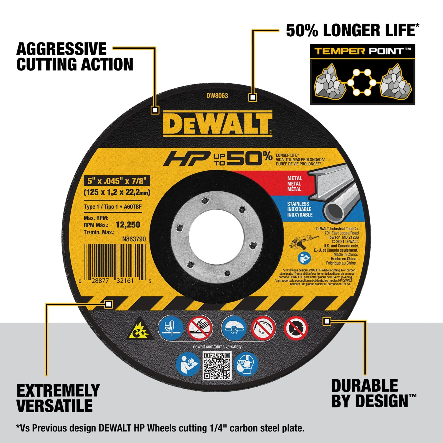 Replace wheels less often with Temper Point grains that are built tougher to maintain razor sharpness for up to 50% longer life. Get a longer lasting cutting edge that resists wear-and-tear with enhanced adhesion between the coated grains and resin. Efficiently cut a wide range of metals including carbon steel, stainless, and nickel-based alloys with the wheel’s thin designs and high-grain concentration. These wheels are exceptionally durable and are built with 2 sheets of fiberglass for optimized strength to help to reduce breakage.