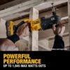 The DEWALT® DCD447 using DCB2108 battery produces up to 79% more Max Watts Out versus using DCB205 battery (sold separately)