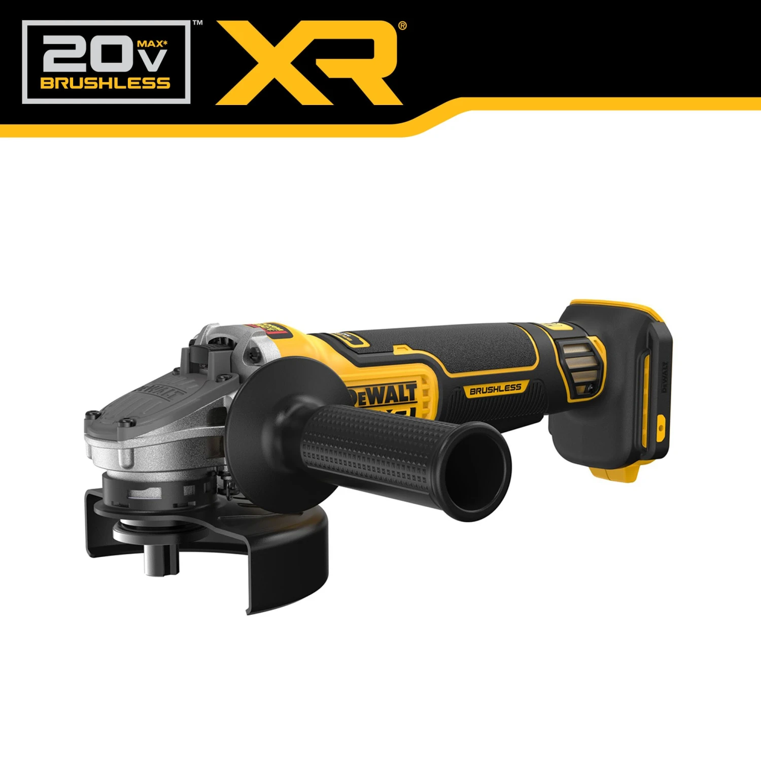 Includes: (1) DCG410 20V MAX* XR® Brushless Cordless 4-1/2 – 5-in Angle Grinder, (1) 5-in (125 mm) Type 27 Guard, (1) Inner and Outer Flange, (1) Wrench, (1) Side Handle, (1) Kit BagAIMER: **Rated MWO