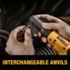 Interchangeable anvil design provides the ability to quickly swap between 3/8-in square drive, and 1/4-in square drive, and 1/4-in quick change hex