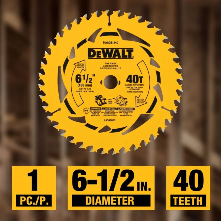 DEWALT 6-1/2-in 40 -Tooth Fine Finish Tungsten Carbide-tipped Steel Circular Saw Blade Individual